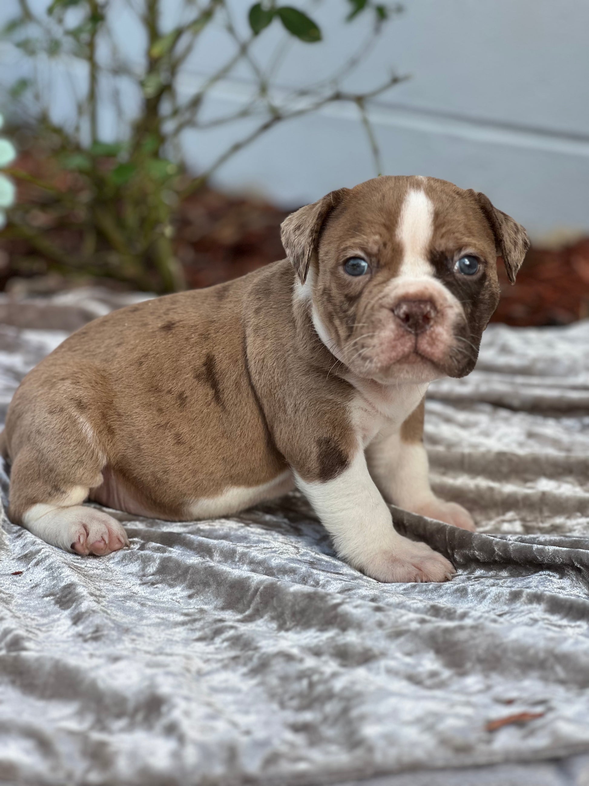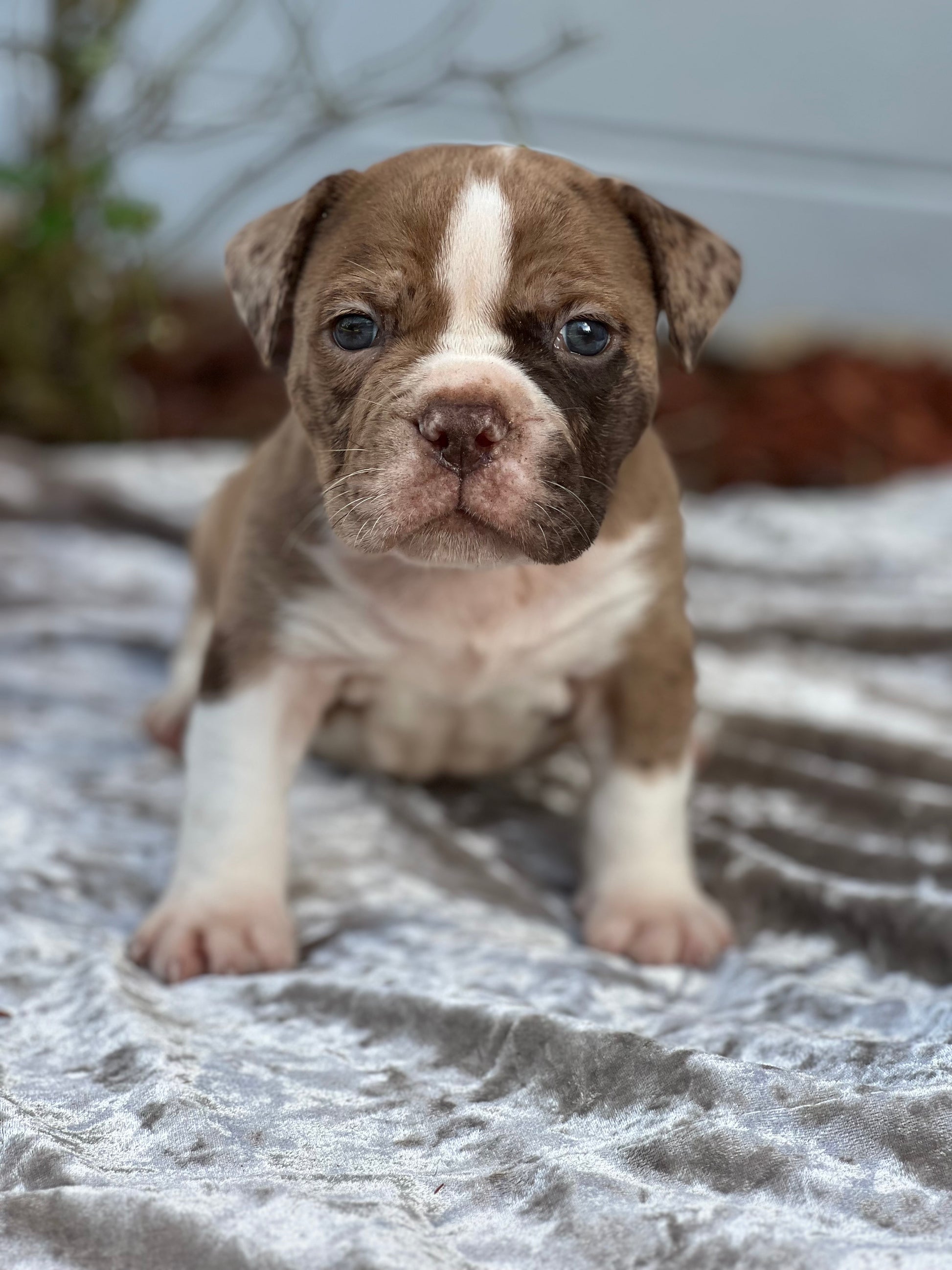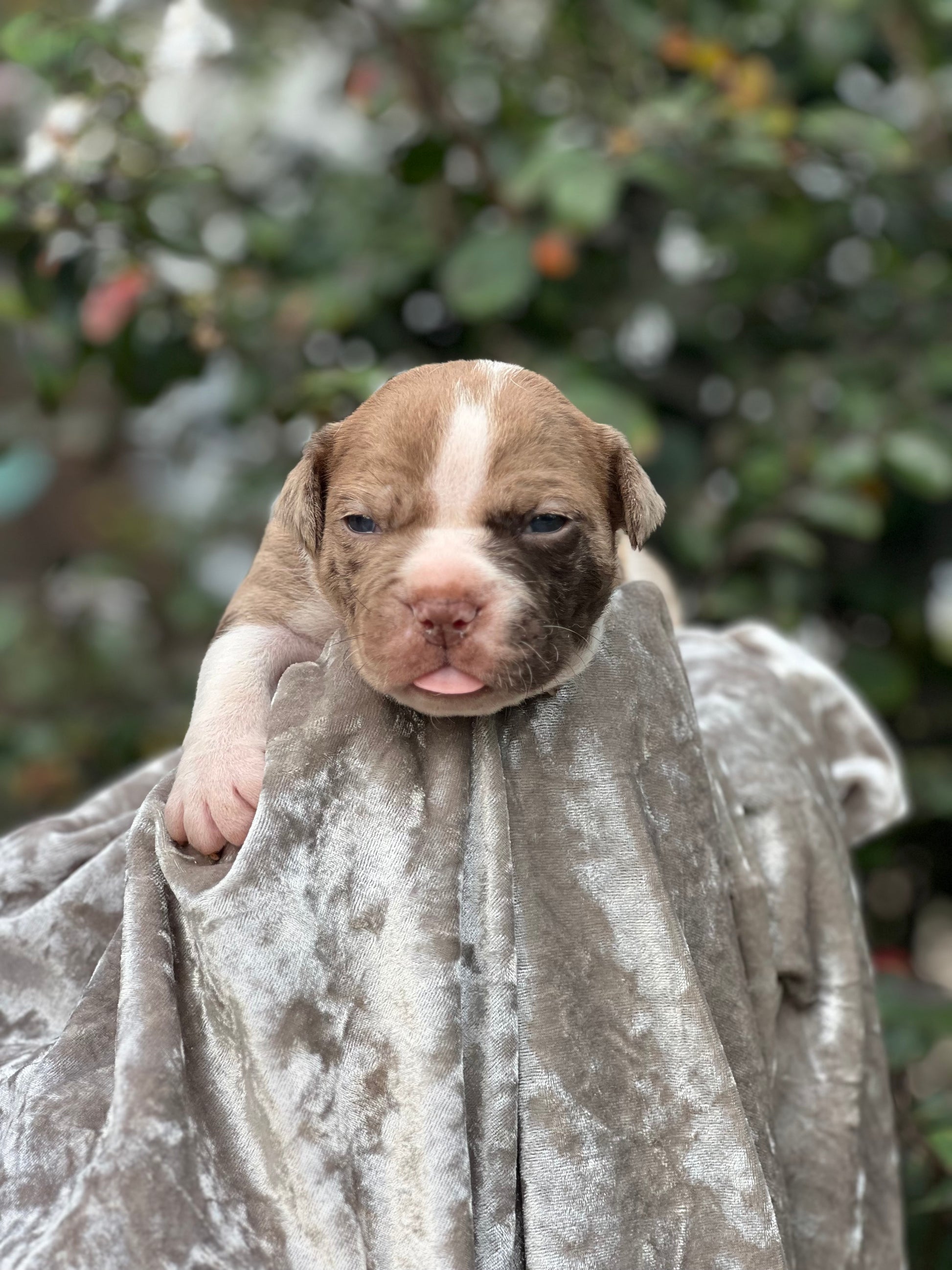 ASHER is a CHOCOLATE MERLE Male puppy by BHB BLINKZ x BHB BINGO born 8-16-2025. Purchase includes first shots, wormed 7 times, ABKC 5 generation registration papers, microchipped, FL health certificate, negative fecal, and 1-year health guarantee, 1 month FREE Tropanion Pet Insurance, 24/7 lifetime support, and training advice. WE CAN DELIVER ANYWHERE WORLDWIDE WITH A FEE . Contact us for a video of ASHER.