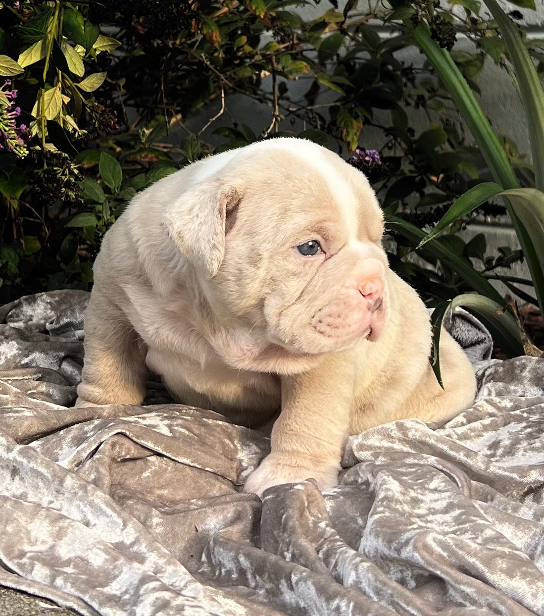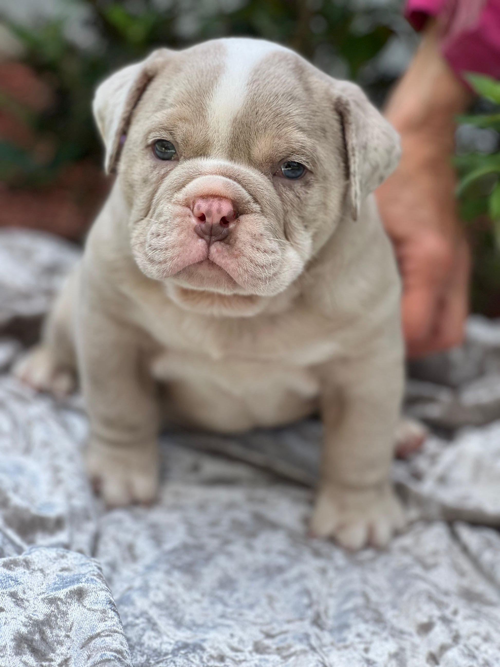 COOPER is a SILVER LILAC MERLE Male puppy by BHB BUTTERCUP x BHB BINGO born 7-9-2025. Purchase includes first shots, wormed 7 times, ABKC 5 generation registration papers, microchipped, FL health certificate, negative fecal, and 1-year health guarantee, 1 month FREE Tropanion Pet Insurance, 24/7 lifetime support, and training advice. WE CAN DELIVER ANYWHERE WORLDWIDE WITH A FEE . Contact us for a video of COOPER. This is my keeper puppy but every dog is for sale!