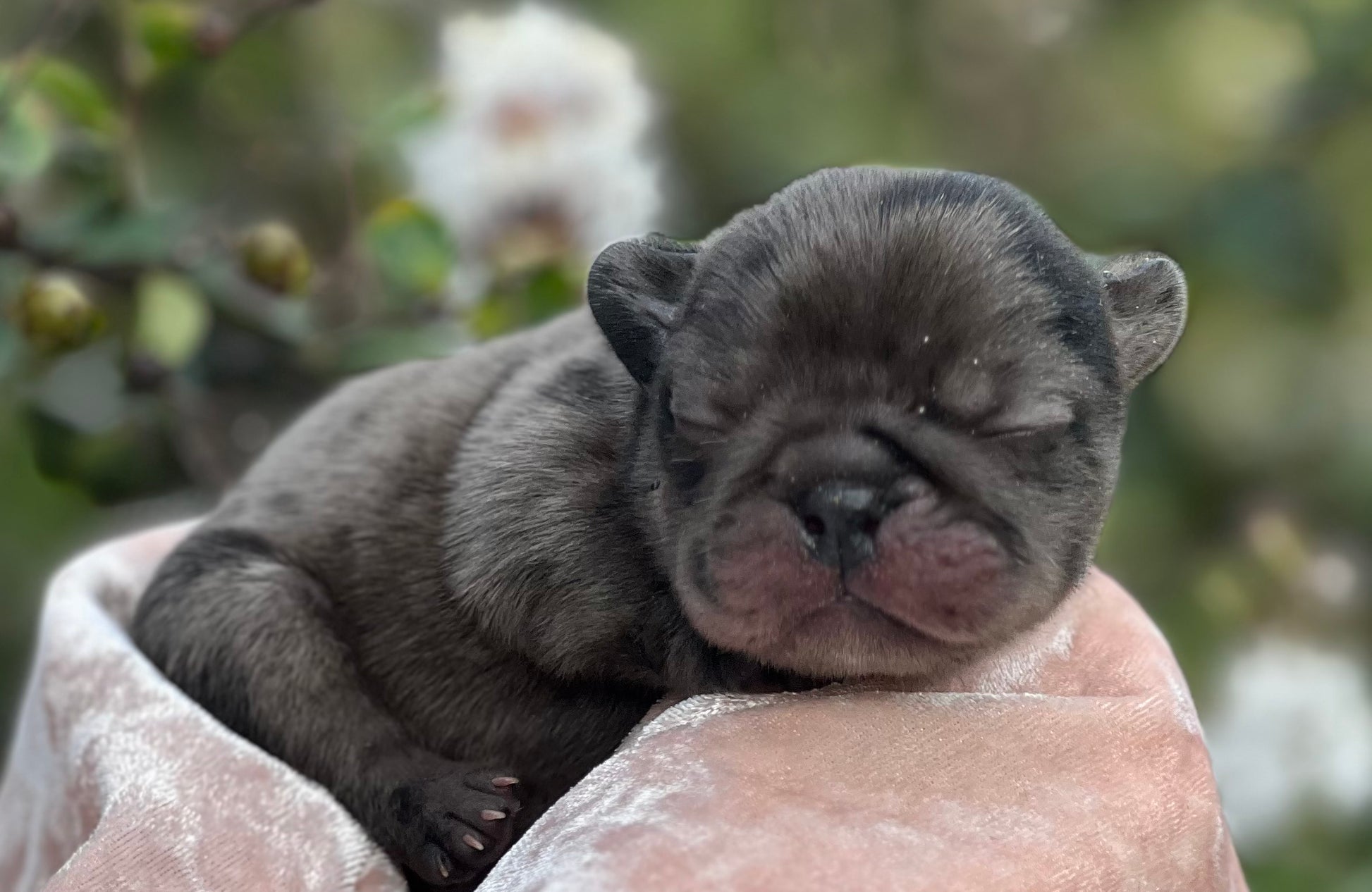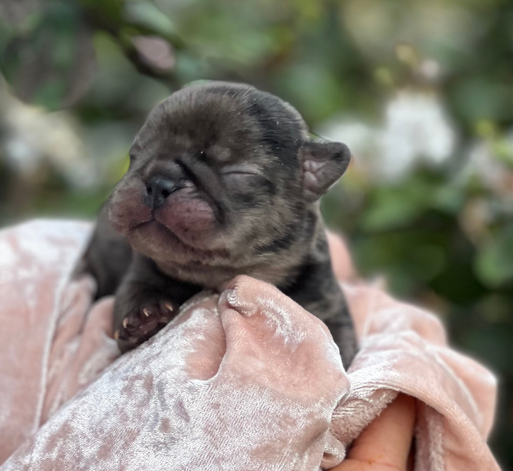 DEVIN is a BLACK MERLE FRENCH BULLDOG Male puppy by BHB ZOEY and BHB CH MARCELUS. Born 8-29-25. Purchase includes first shots, wormed 7 times, AKC 5 generation registration papers, microchipped, FL health certificate, negative fecal, and 1-year health guarantee, 1 month FREE Tropanion Pet Insurance, 24/7 lifetime support, and training advice. WE CAN DELIVER ANYWHERE WORLDWIDE WITH A FEE . Contact us for a video of DEVIN