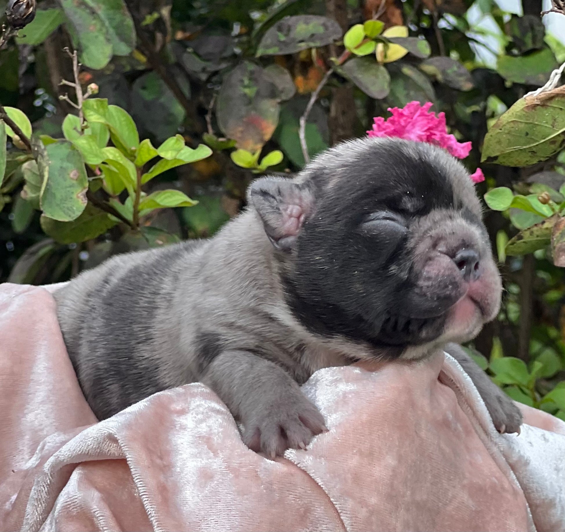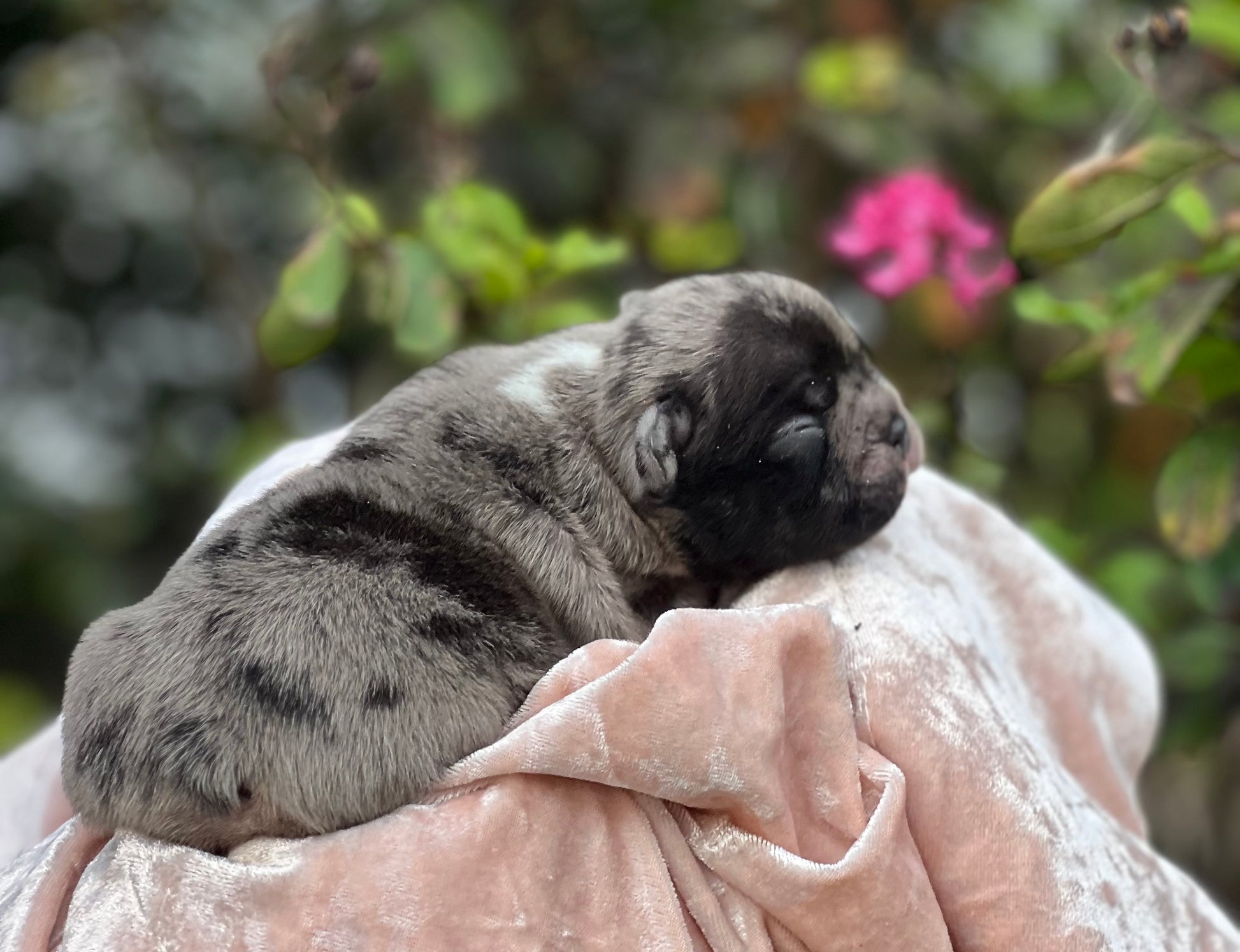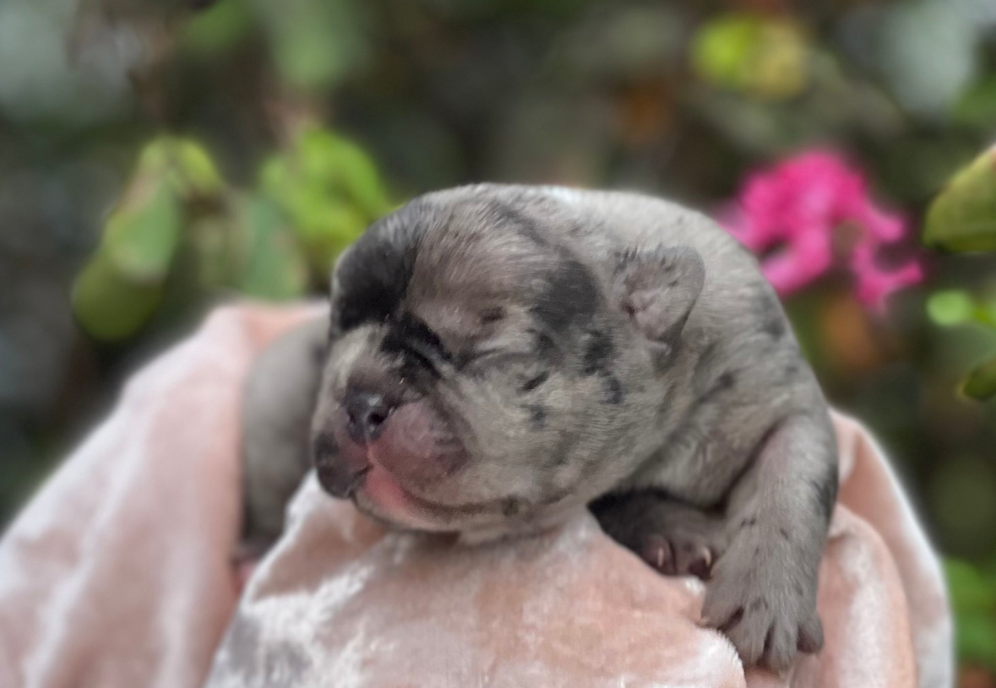 HARVEY is a BLACK MERLE FRENCH BULLDOG Male puppy by BHB ZOEY and BHB CH MARCELUS. Born 8-29-25. Purchase includes first shots, wormed 7 times, AKC 5 generation registration papers, microchipped, FL health certificate, negative fecal, and 1-year health guarantee, 1 month FREE Tropanion Pet Insurance, 24/7 lifetime support, and training advice. WE CAN DELIVER ANYWHERE WORLDWIDE WITH A FEE . Contact us for a video of HARVEY.