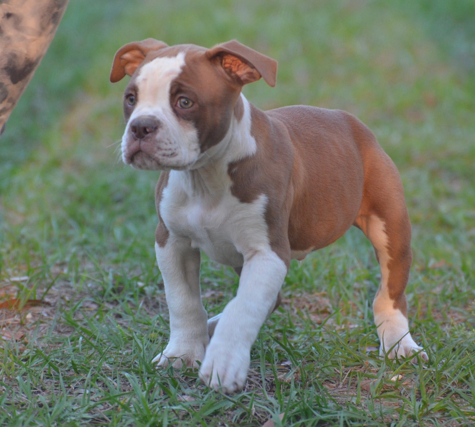 Henri is a CHOCOLATE Male puppy by BHB CH THYRA X BHB MR. KNUCKLES. Born 1-2-25. Purchase includes first shots, wormed 7 times, ABKC 5 generation registration papers, microchipped, FL health certificate, negative fecal, and 1-year health guarantee, 1 month FREE Tropanion Pet Insurance, 24/7 lifetime support, and training advice. WE CAN DELIVER ANYWHERE WORLDWIDE WITH A FEE . Contact us for a video of HENRI.
