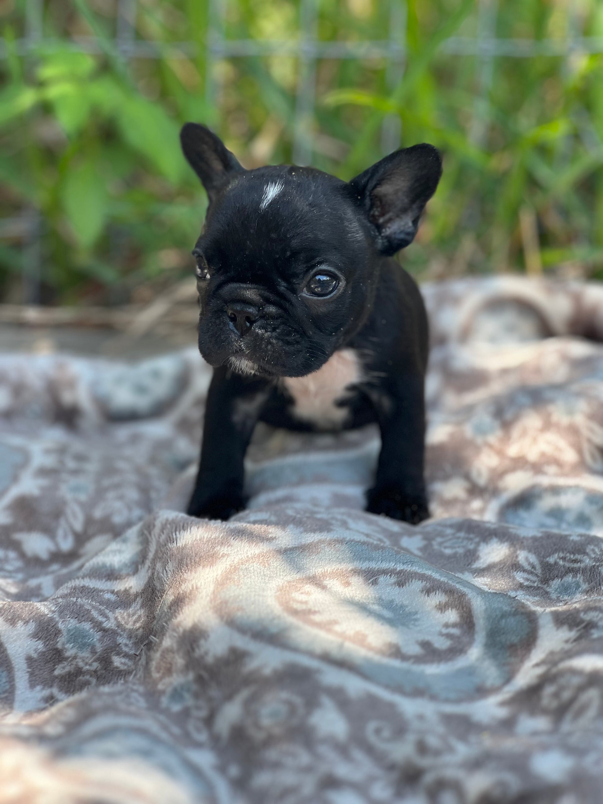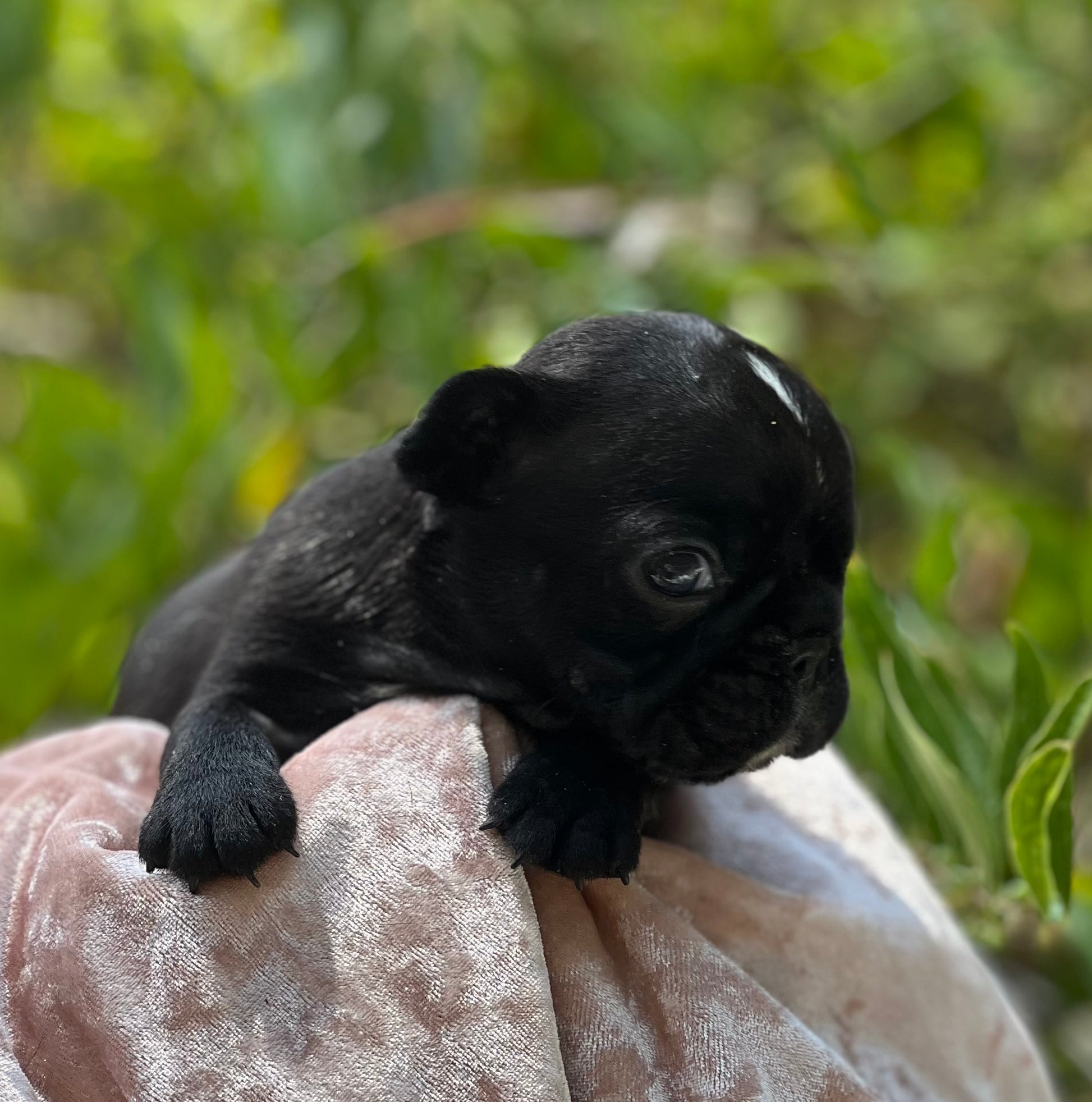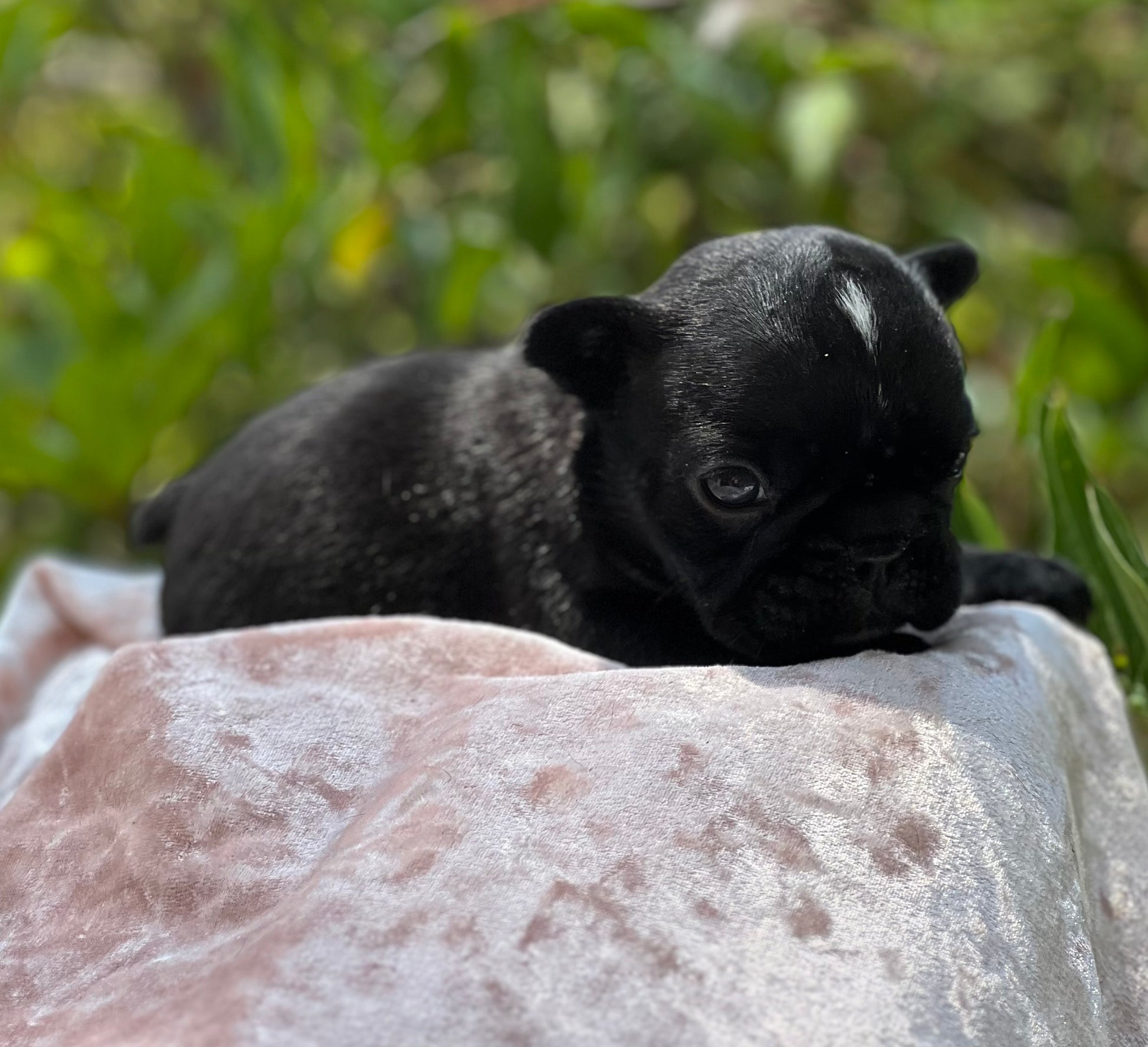 LANEY is a BLACK BRINDLE FRENCH BULLDOG Female puppy by CH BHB ANNIKA and GRANDCHAMPION MATEO. Born 4-12-25. Purchase includes first shots, wormed 7 times, AKC 5 generation registration papers, microchipped, FL health certificate, negative fecal, and 1-year health guarantee, 1 month FREE Tropanion Pet Insurance, 24/7 lifetime support, and training advice. WE CAN DELIVER ANYWHERE WORLDWIDE WITH A FEE . Contact us for a video of LANEY.