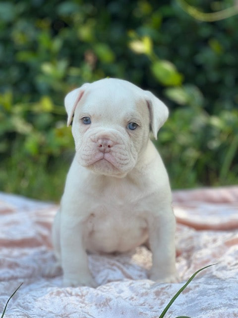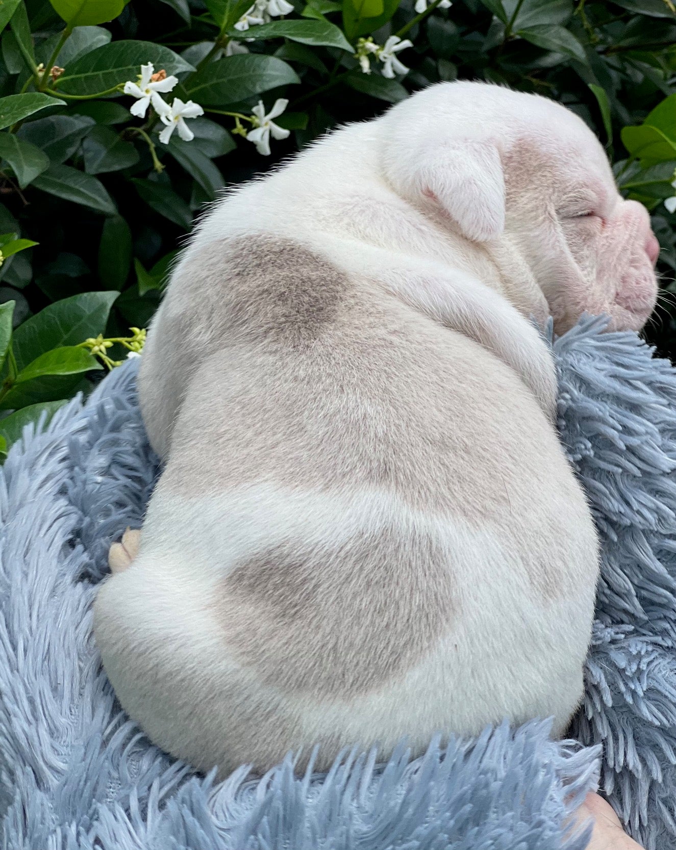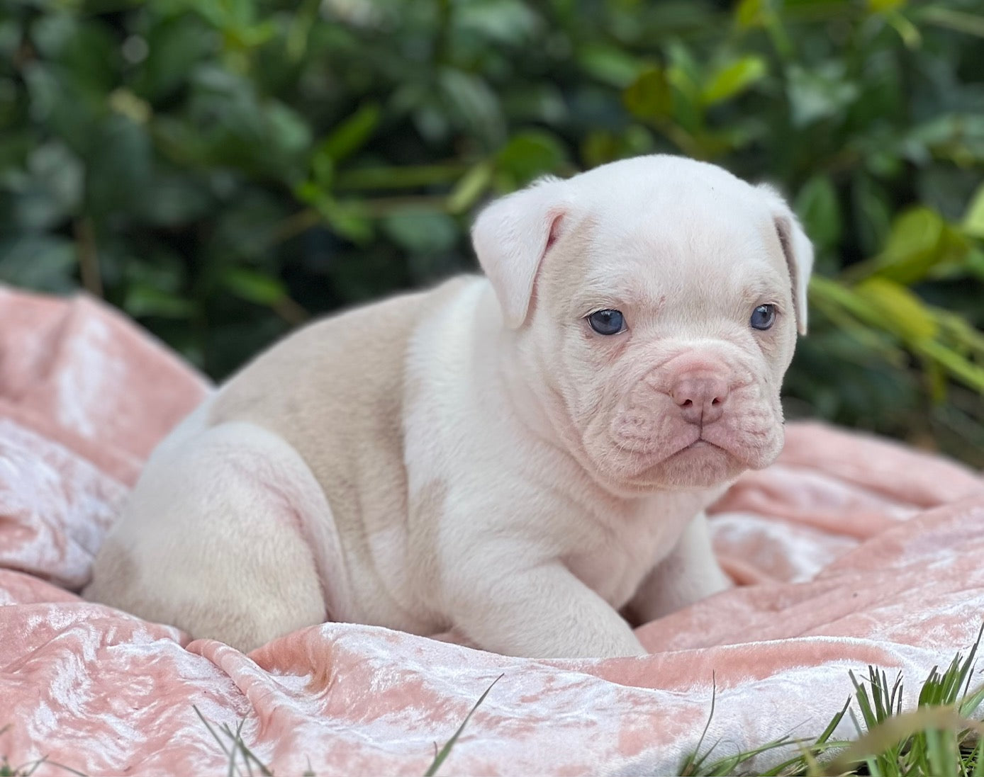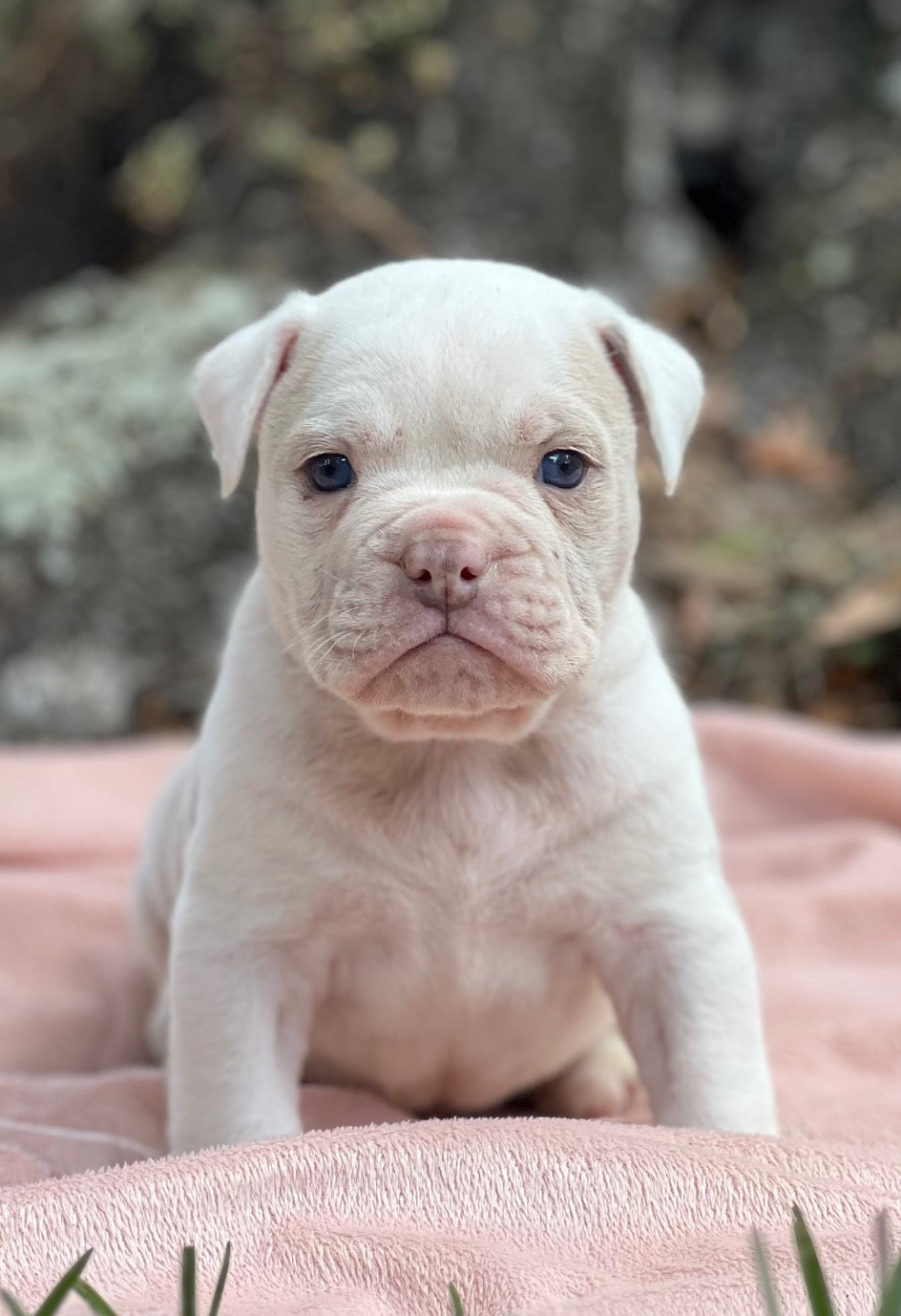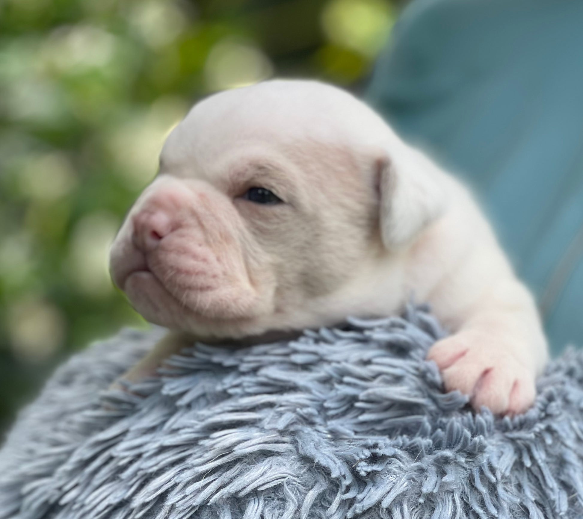 RAZZLE is a LILAC MERLE Male puppy by BHB CINDERBLOCK and BHB MR. CAPTAIN. born 5-19-24. Purchase includes first shots, wormed 7 times, ABKC 5 generation registration papers, microchipped, FL health certificate, negative fecal, and 1-year health guarantee, 1 month FREE Tropanion Pet Insurance, 24/7 lifetime support, and training advice. WE CAN DELIVER ANYWHERE WORLDWIDE WITH A FEE. Contact us for a video of RAZZLE. This beautiful Merle boy comes with a heart in his coat as well as blue eyes.