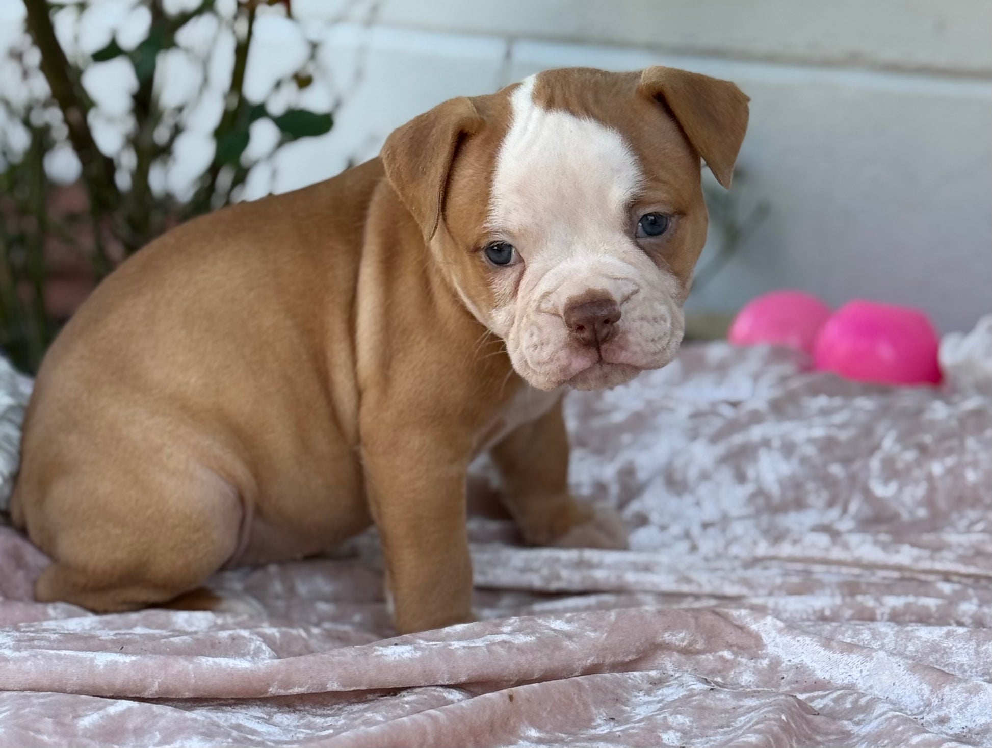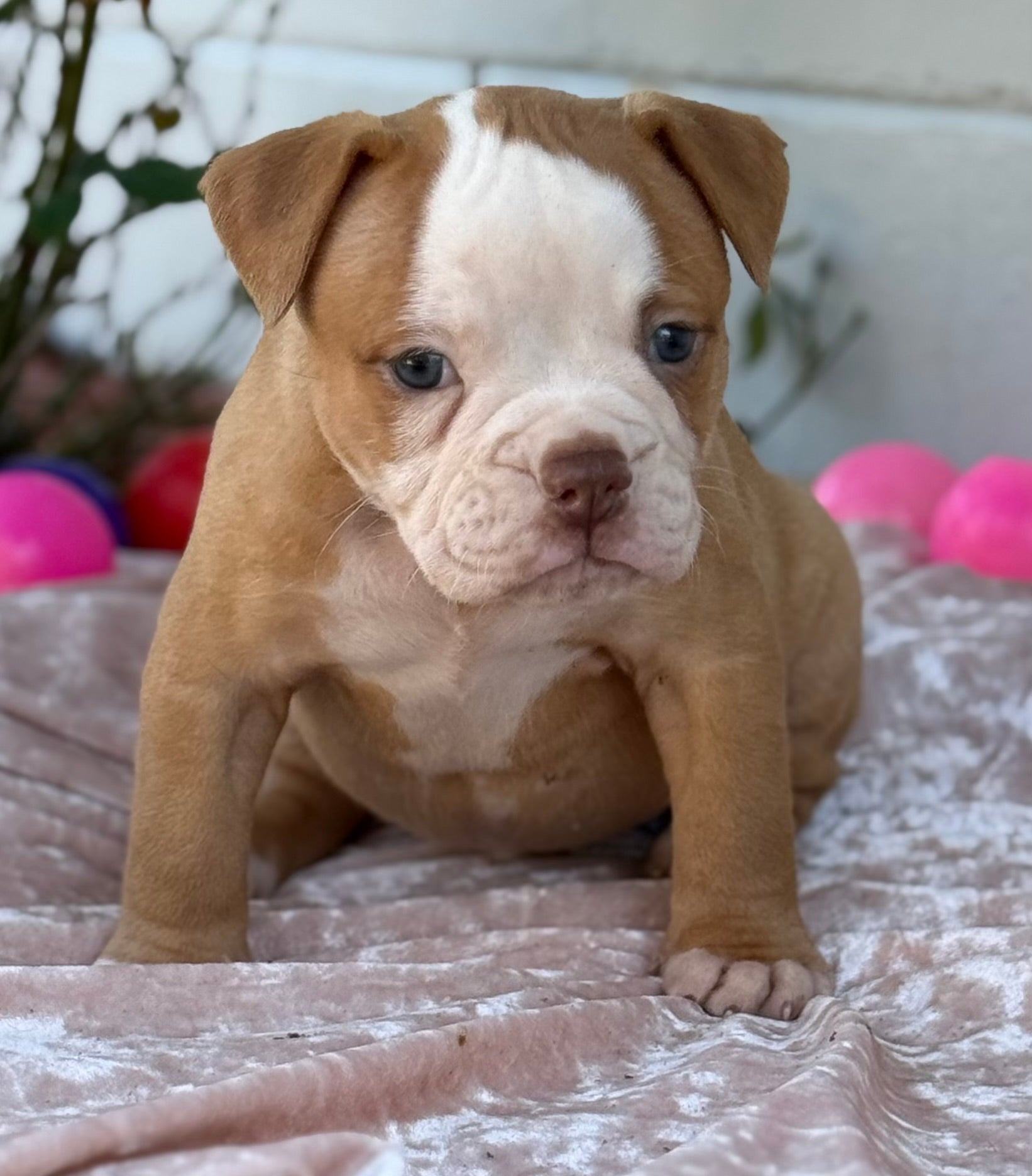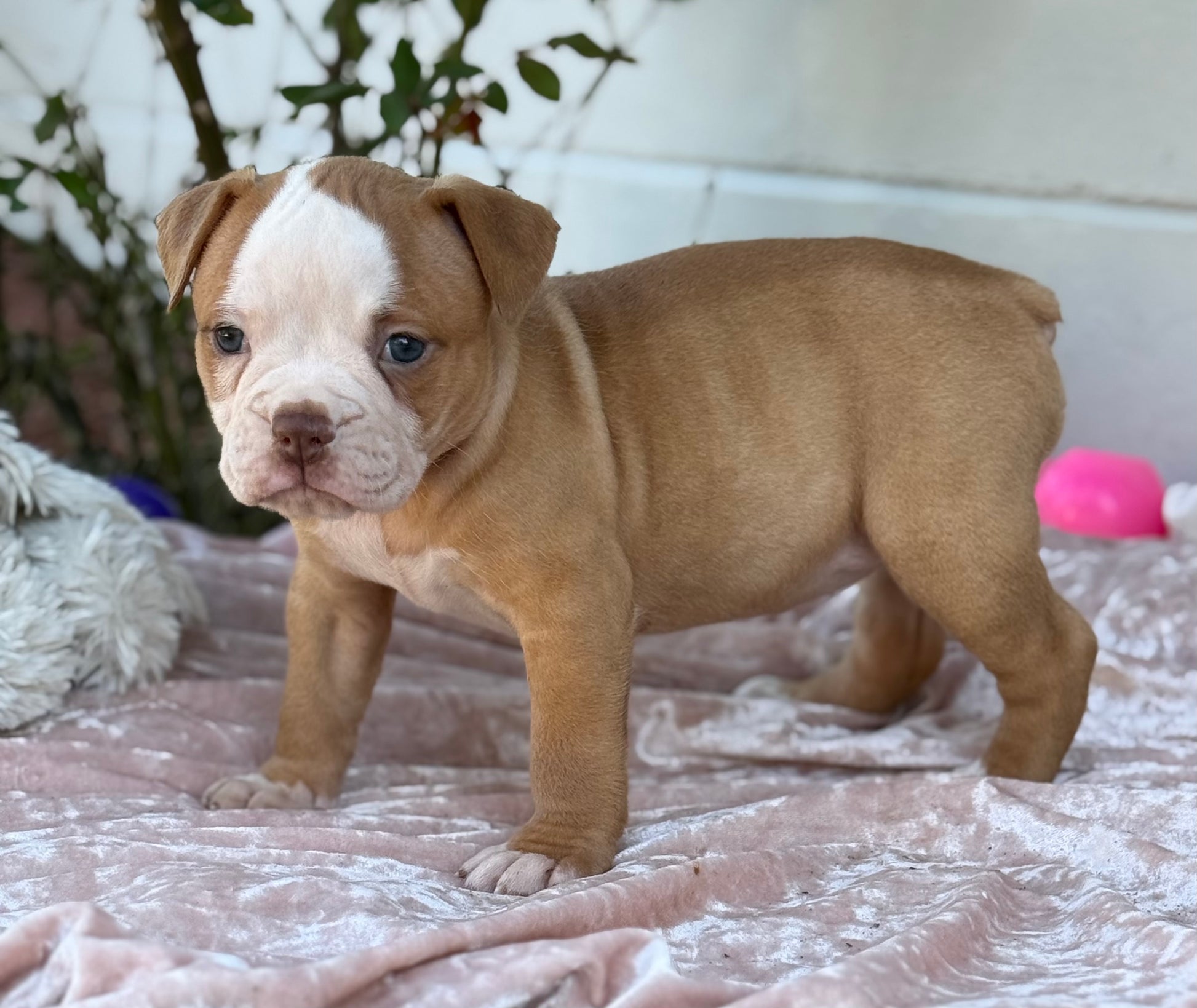 ROSE is a CHOCOLATE FAWN Female puppy by BHB CINDER BLOCK x BHB MR. KNUCKLES, born 10-3-2025. Purchase includes first shots, wormed 7 times, ABKC 5 generation registration papers, microchipped, FL health certificate, negative fecal, and 1-year health guarantee, 1 month FREE Tropanion Pet Insurance, 24/7 lifetime support, and training advice. WE CAN DELIVER ANYWHERE WORLDWIDE WITH A FEE . Contact us for a video of ROSE.
