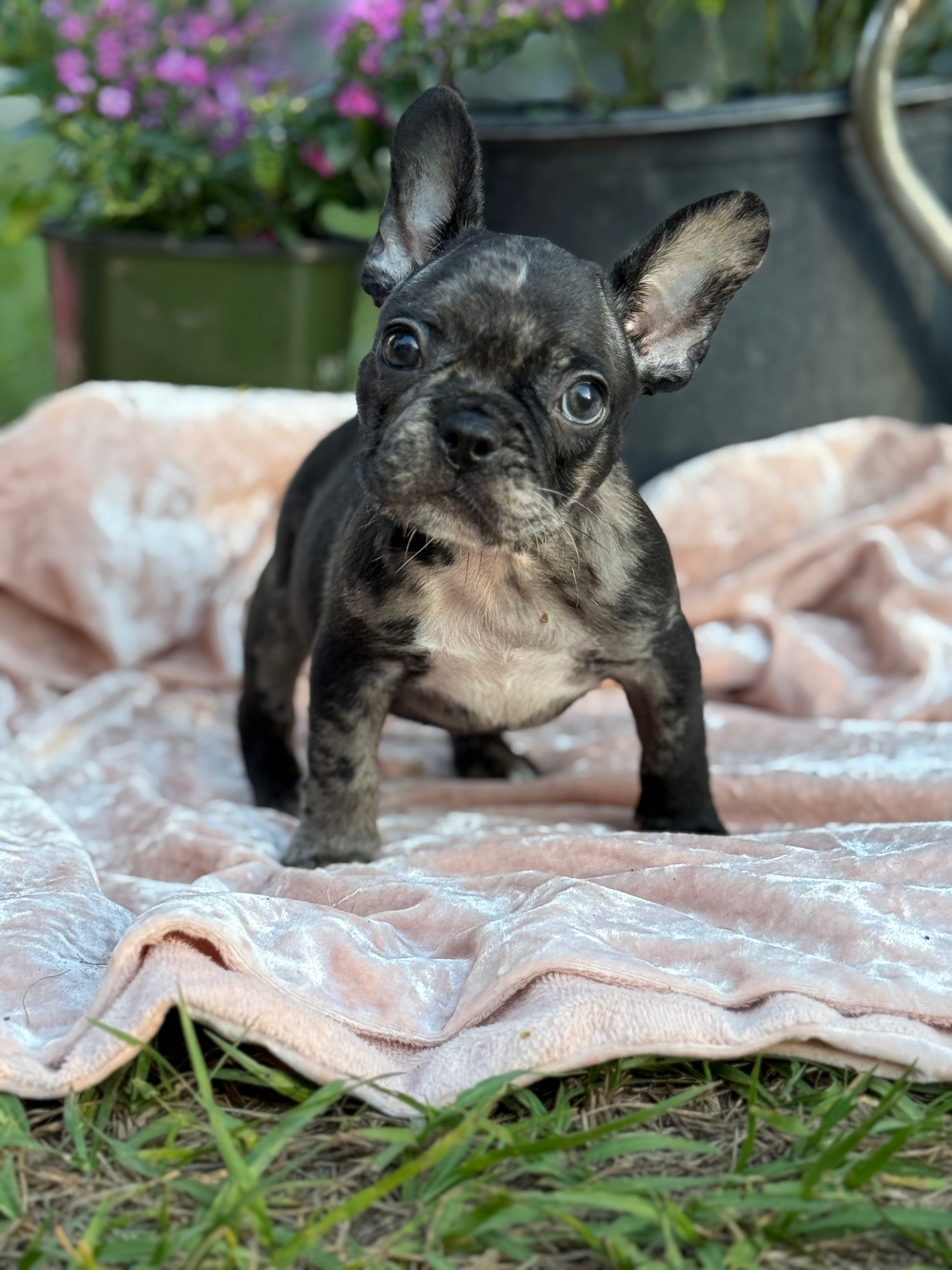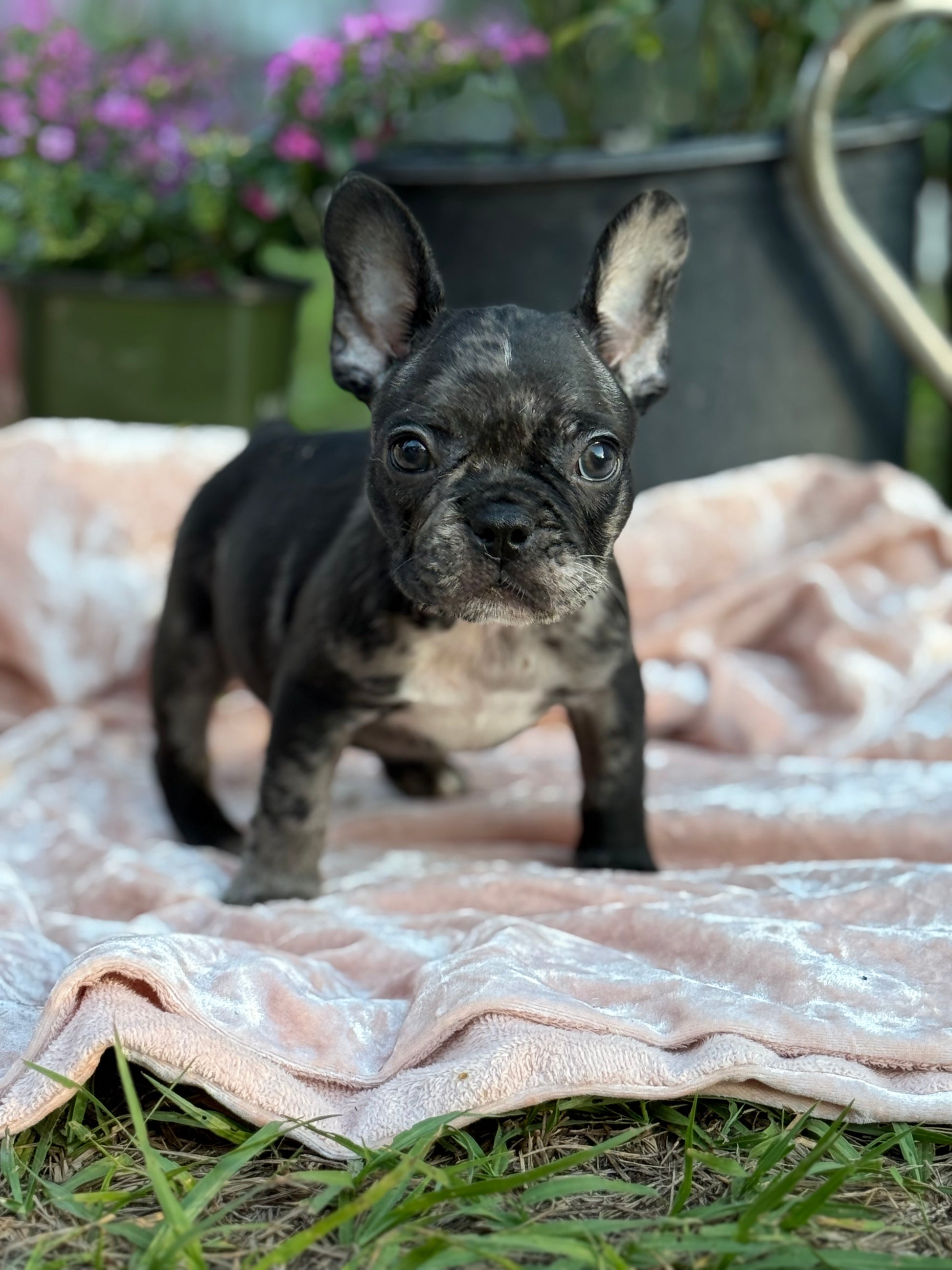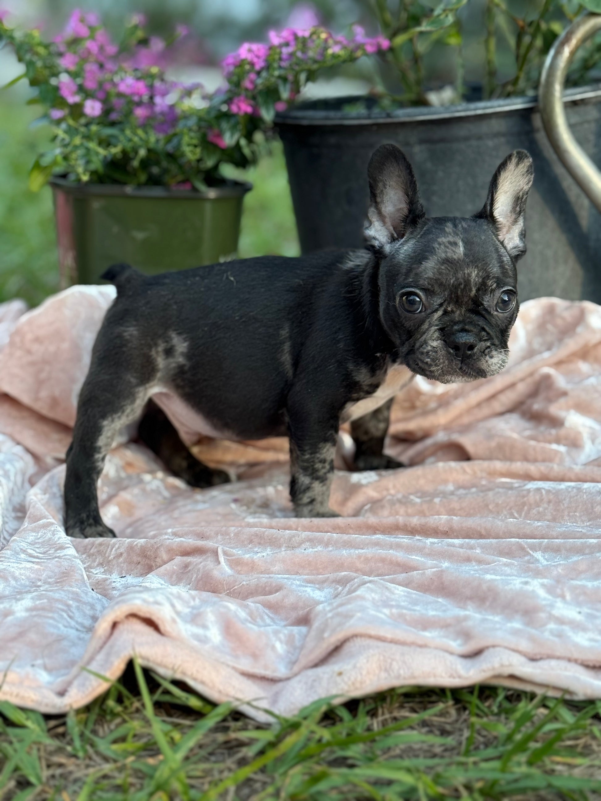 SPOOKY is a BLACK BRINDLE FRENCH BULLDOG Male puppy by BHB ZOEY and BHB CH MARCELUS. Born 8-29-25. Purchase includes first shots, wormed 7 times, AKC 5 generation registration papers, microchipped, FL health certificate, negative fecal, and 1-year health guarantee, 1 month FREE Tropanion Pet Insurance, 24/7 lifetime support, and training advice. WE CAN DELIVER ANYWHERE WORLDWIDE WITH A FEE . Contact us for a video of SPOOKY.