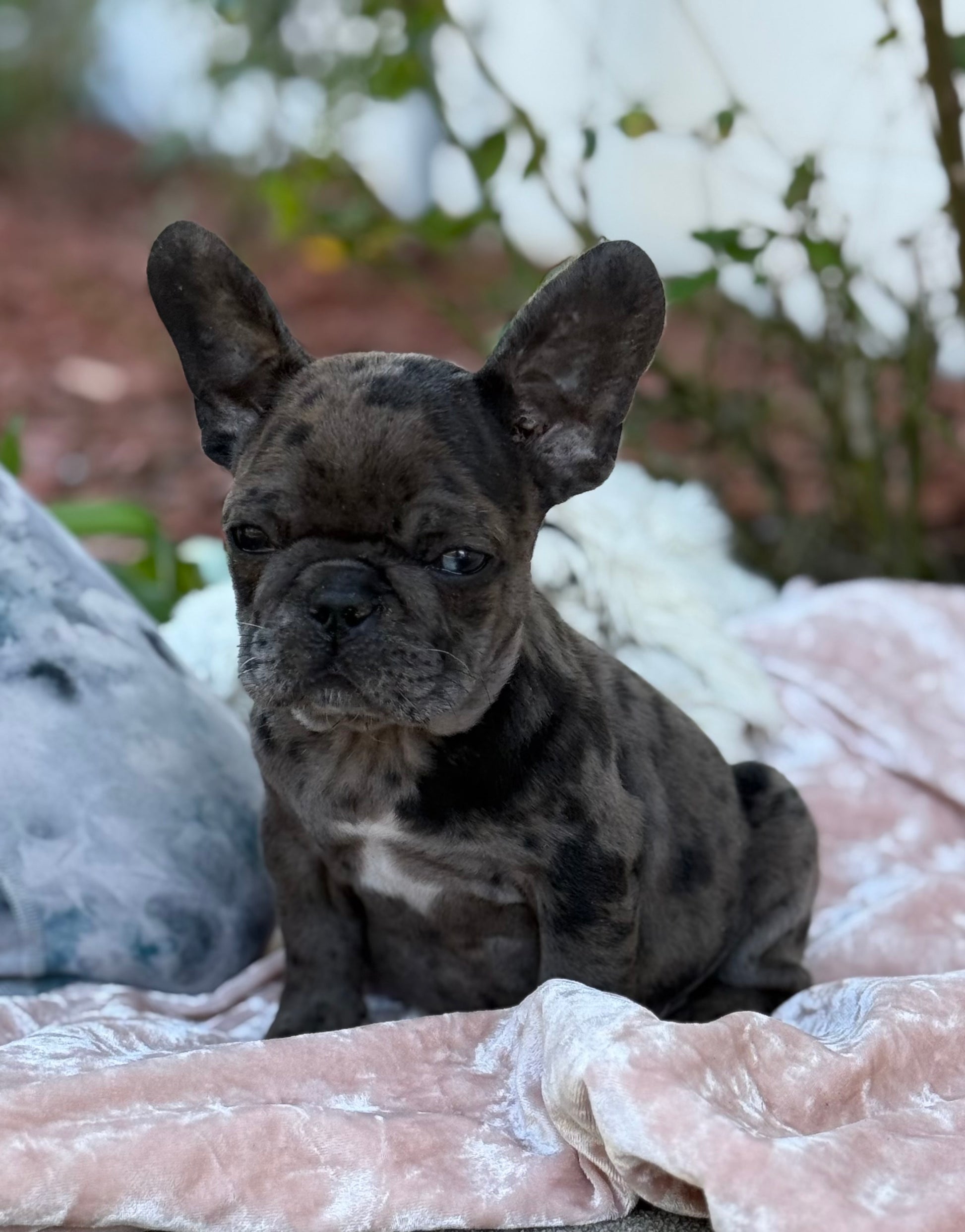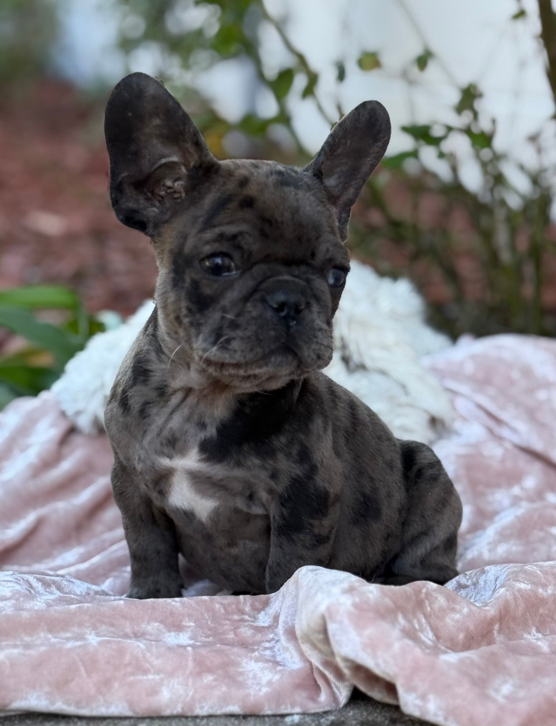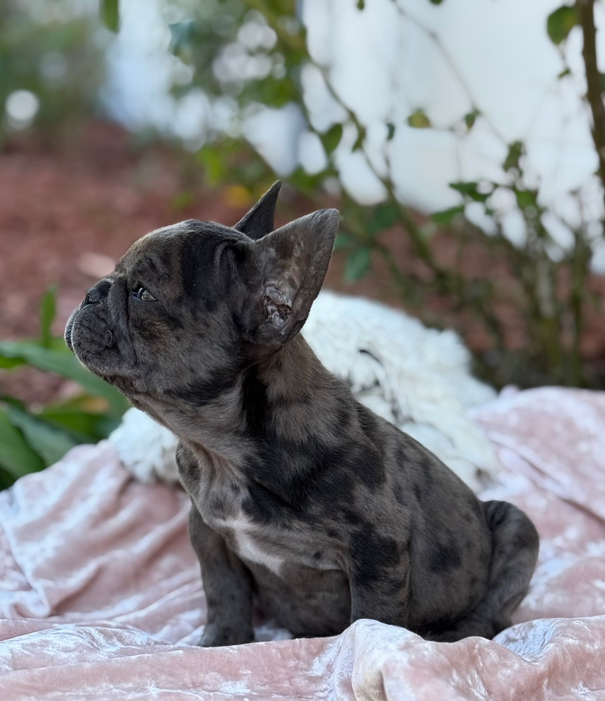 TILLY is a BLACK BRINDLE FRENCH BULLDOG Male puppy by BHB ZOEY and BHB CH MARCELUS. Born 8-29-25. Purchase includes first shots, wormed 7 times, AKC 5 generation registration papers, microchipped, FL health certificate, negative fecal, and 1-year health guarantee, 1 month FREE Tropanion Pet Insurance, 24/7 lifetime support, and training advice. WE CAN DELIVER ANYWHERE WORLDWIDE WITH A FEE . Contact us for a video of TILLY.